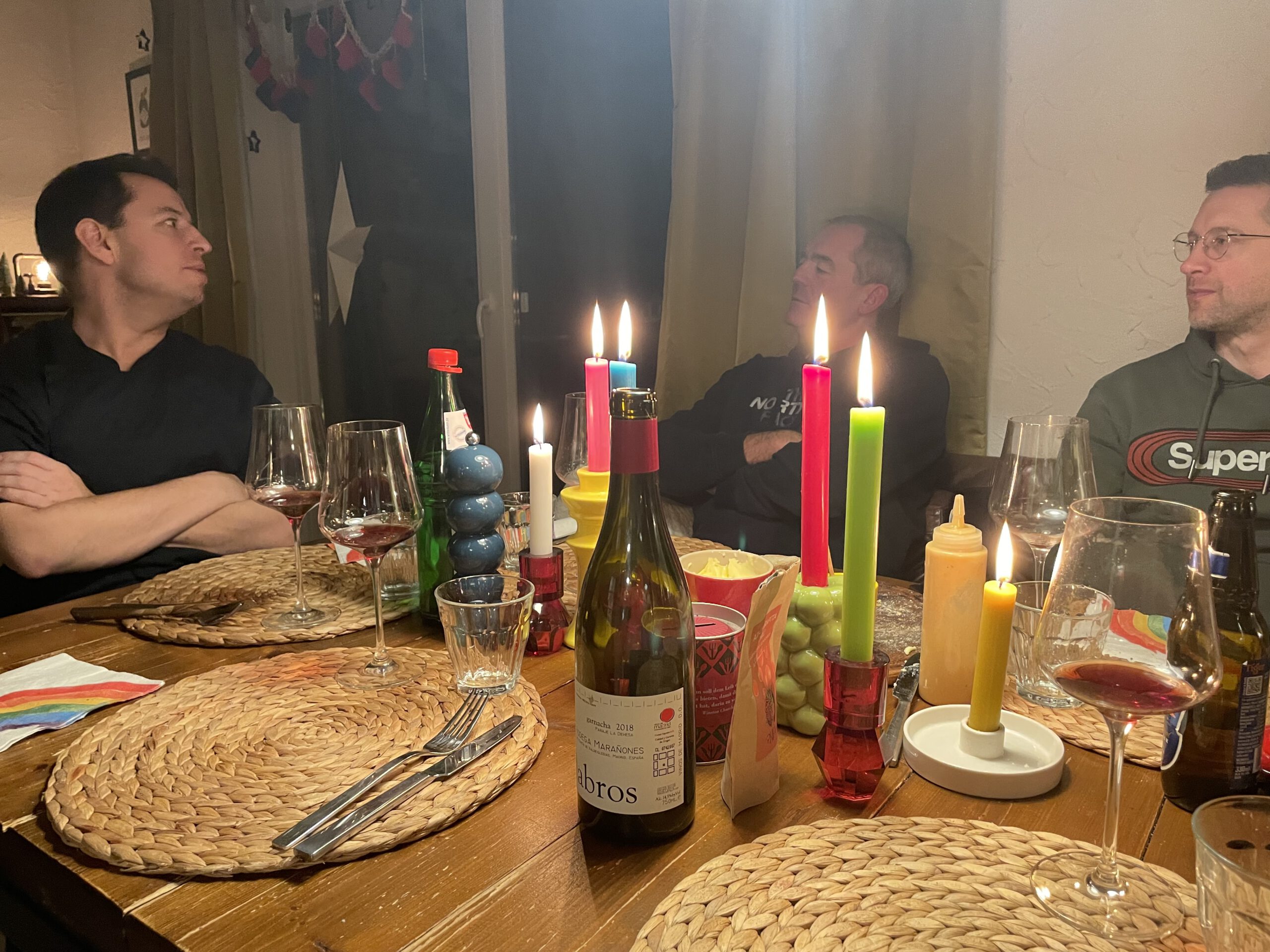 Bei diesem Weinabend war der Ablauf etwas anders. Ich wollte in meinen Geburtstag reinfeiern und habe um etwas modifizierte Regeln gebeten. Ich habe jedem Koch eine Zutat zugeteilt, von der ich glaubte, dass er sie besonders gut umsetzen konnte. Weiterhin gab es keine Bewertungen und als letzte Änderung am Standardablauf brachte nicht jeder Koch seine eigenen Weine mit, sondern ich habe aus meinem Keller passende Weine zu den Gerichten ausgesucht. Aus meiner Sicht war das ein sehr schöner Abend mit wirklich schönen Gerichten und sehr leckeren Getränken! Vielen Dank dafür!